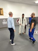 Congratulations on your decision to try out Jiu-Jitsu! You can come to any scheduled class, just wear appropriate workout gear. See you on the mat!