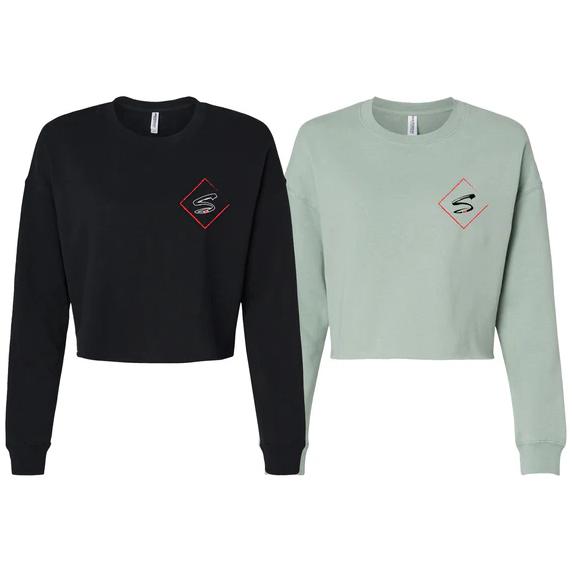 Women's Cropped Crewneck Sweathshirt Black Or Green